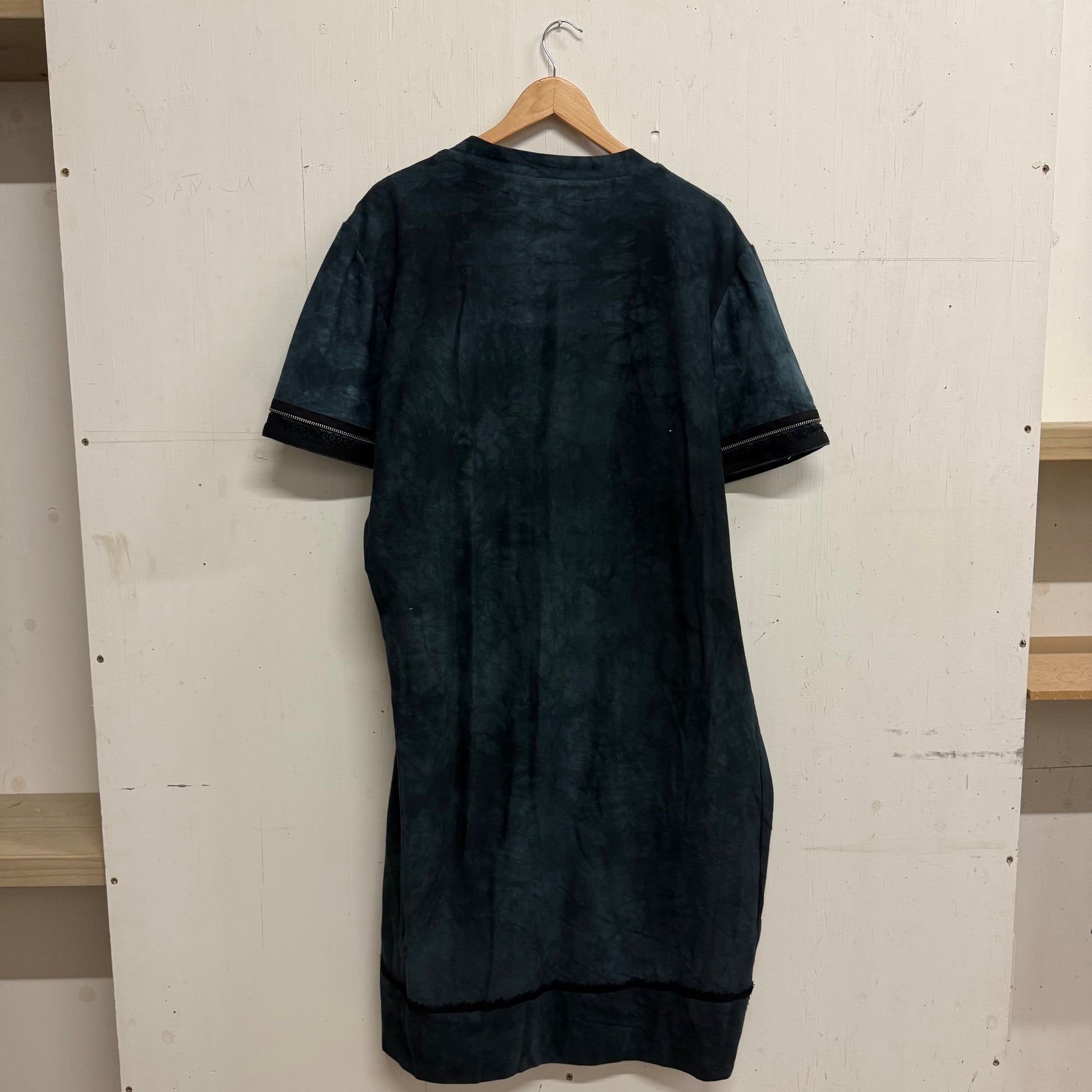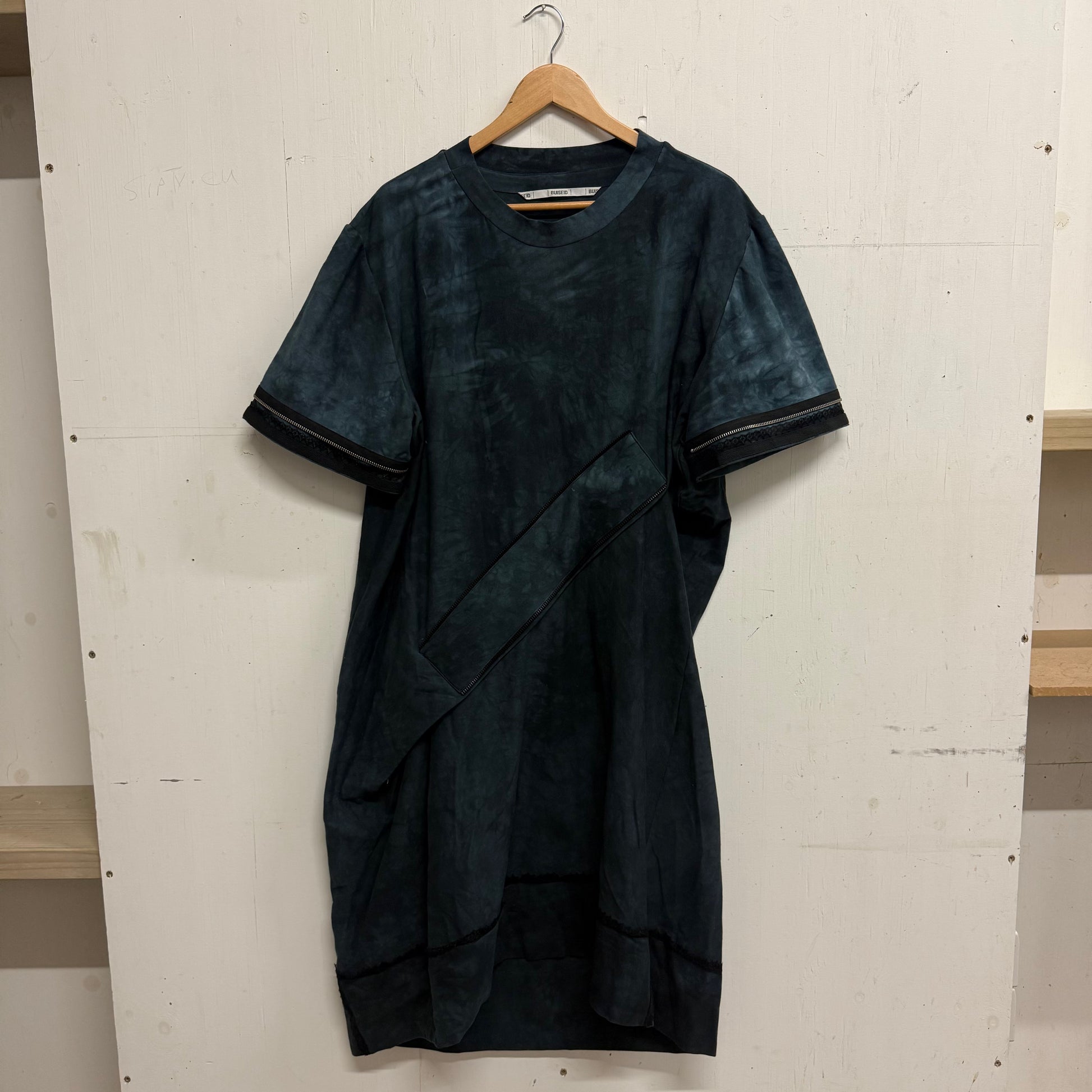 Asymmetrical Jersey Dress with zip details on front and sleeves.