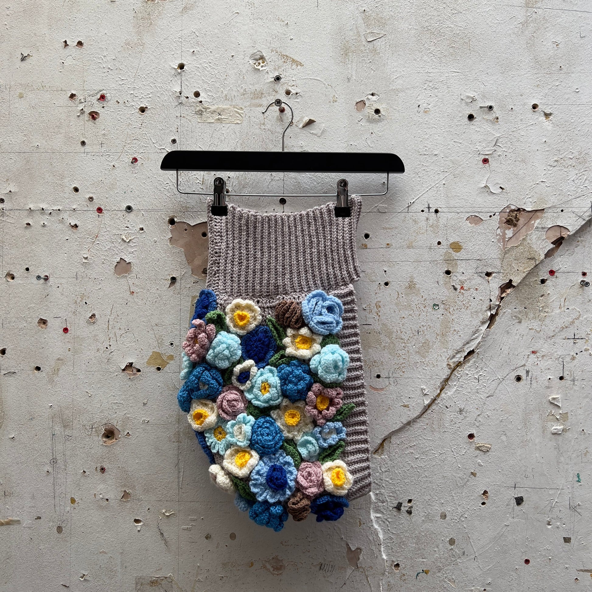 Around 100 pieces were made and then stitched onto the base to create this bouquet effect.