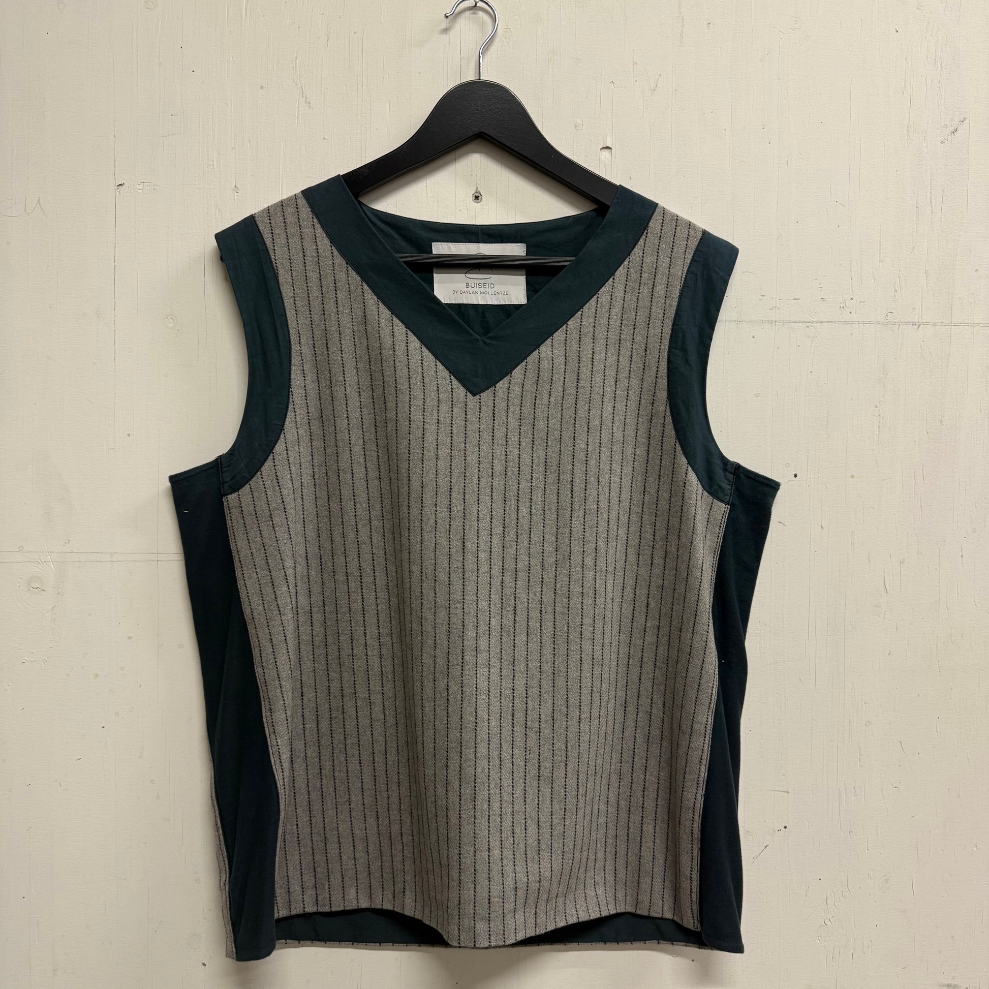 Wool stripe tank with a v-nack design. Lined with hand dyed cotton poplin.