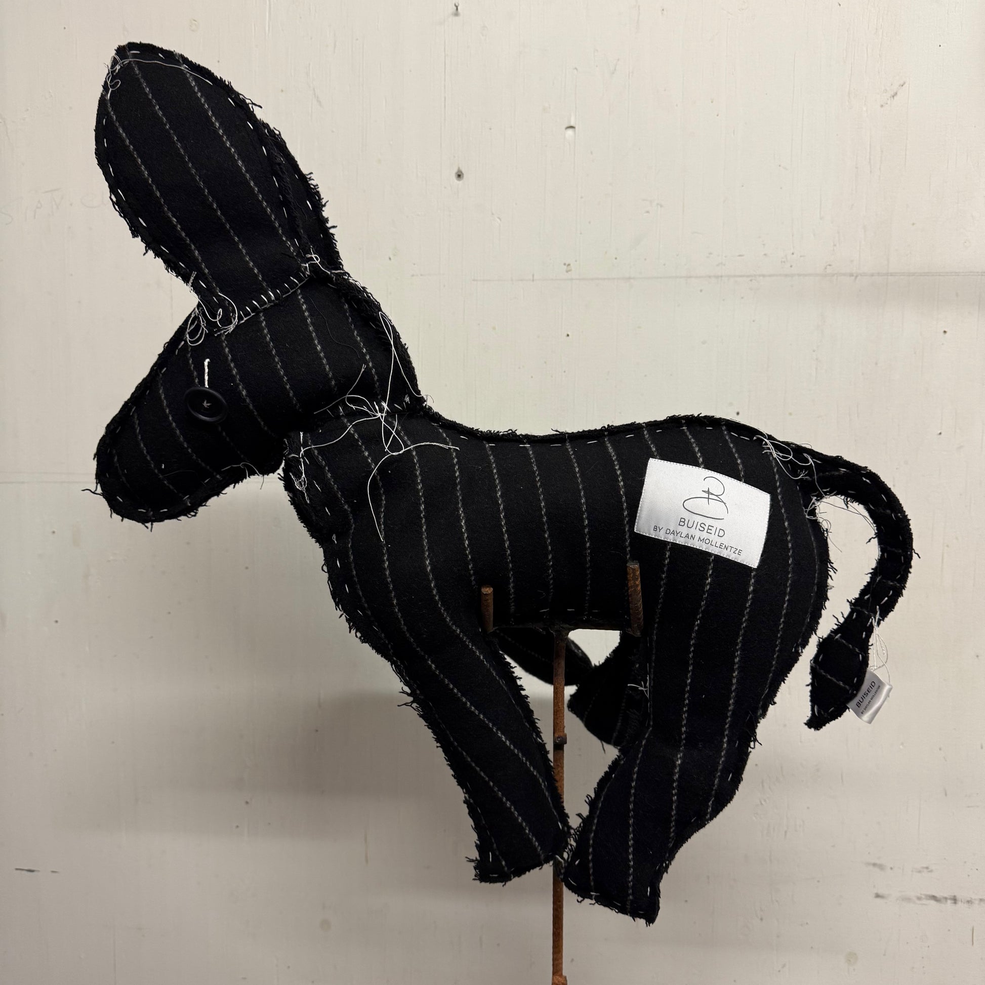This is a 1/1 wool donkey that represents the influence my mother had on me growing up around my perception of waste and using what we have to make what we need.